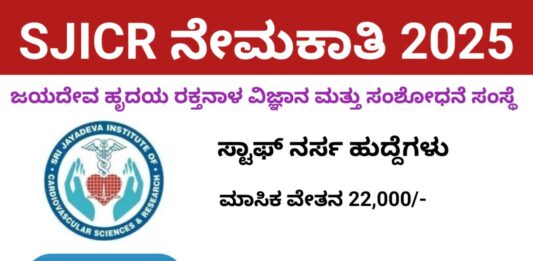 ಶ್ರೀ ಜಯದೇವ ಹೃದಯರಕ್ತನಾಳ ವಿಜ್ಞಾನ ಮತ್ತು ಸಂಶೋಧನಾ ಸಂಸ್ಥೆ ಸೆಪ್ಟೆಂಬರ್ 2025 ರ SJICR ಅಧಿಕೃತ ಅಧಿಸೂಚನೆಯ ಮೂಲಕ ಸ್ಟಾಫ್ ನರ್ಸ್ ಹುದ್ದೆಗಳನ್ನು ಭರ್ತಿ ಮಾಡಲು ಅರ್ಹ … Continue reading SJICR ನೇಮಕಾತಿ 2025 – 15 ಸ್ಟಾಫ್ ನರ್ಸ್ ಹುದ್ದೆಗಳಿಗೆ ಅರ್ಜಿ ಸಲ್ಲಿಸಿ